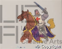 Scene 4 'Wars with Jerusalem': Dope sheet Animation cels of a crusader riding a horse (annotated C0 - C12) Pencil drawings of a crusader riding a horse (annotated C0 - C12) Painted background (annotated BG1)